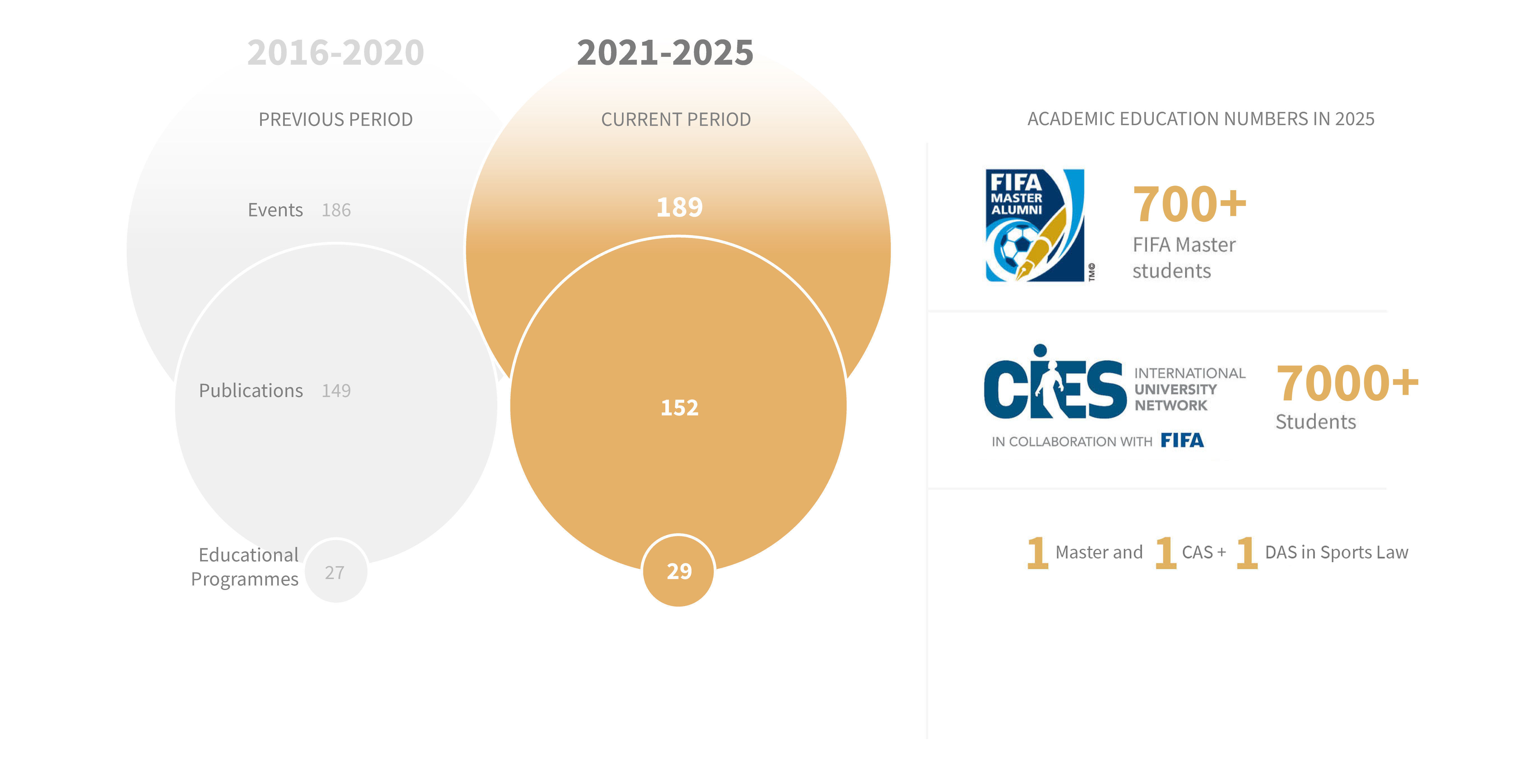 In addition, it still operates as the headquarters of the International University Network, now offering the FIFA/CIES Programme in Sports Management in 20 countries worldwide, following its expansion to Saudi Arabia. To date, more than 7,000 students - of whom almost 90% now work in sport and around 70% in football – have studied on the CIES International University Network course.