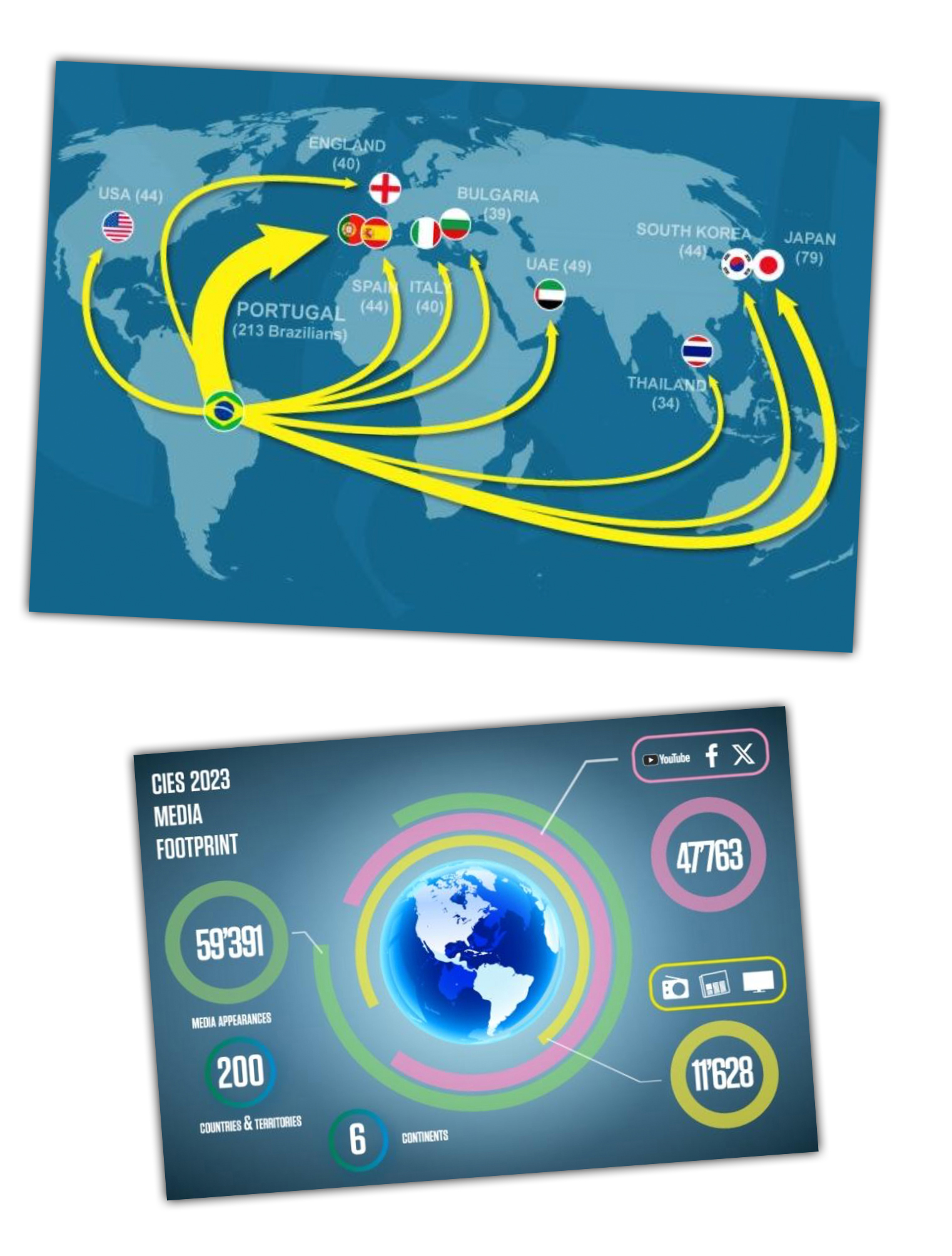 The influence of CIES on the sports industry can also be measured by a few figures: 59,391 text appearances citing CIES in media around the world and, even more impressively, over 116 million views if we add up all the views generated by the various CIES branches on social networks.